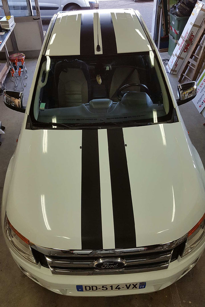 Réalisation d’un covering partiel de série pour un particulier. Décor fourni par le client