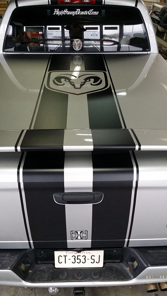 Ce client souhaitait personnaliser son véhicule à petit budget, du coup nous sommes partis sur un covering partiel. Décor réalisé par nos soins (autocollant spécial Wrapping noir mâte)