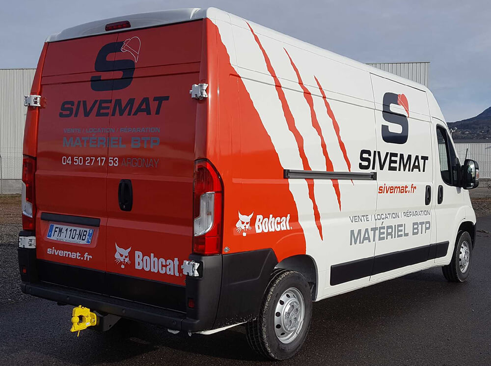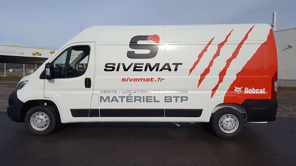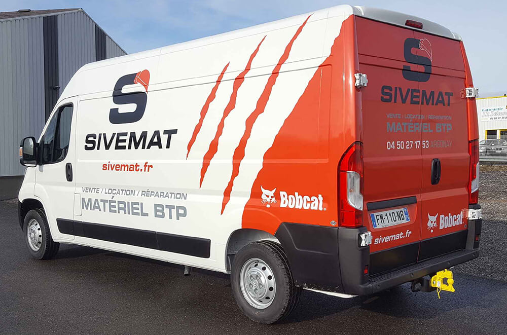 Réalisation d’un covering partiel pour le nouveau véhicule de cette société spécialisée dans la vente, la location et la réparation de matériel BTP. Ce décor a été décliné sur toute la flotte de véhicules de l’entreprise. Décor fourni par le client