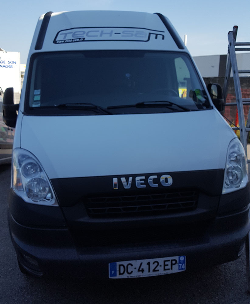 Personnalisation de la calandre d’un camion pour une société travaillant dans l’évènementiel. Décor réalisé par nos soins