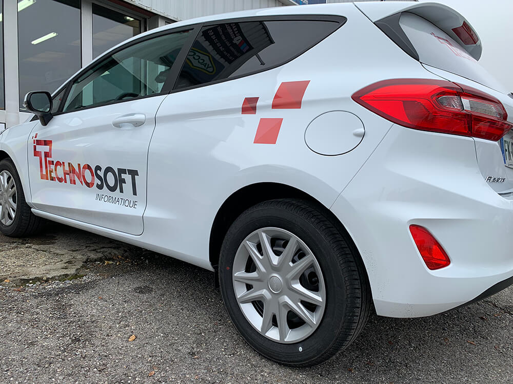 Réalisation d’un covering partiel pour cette entreprise de saint Jeoire spécialisée dans la vente et la maintenance de matériel informatique. Décor réalisé par notre partenaire graphique OAK-Webdesign.