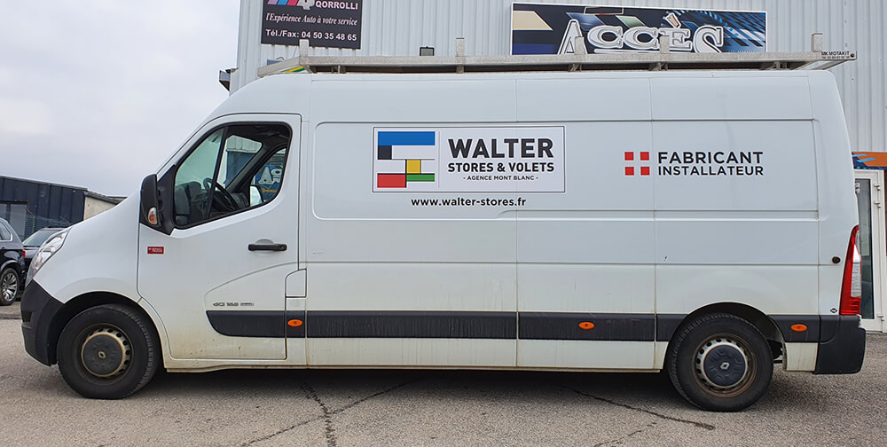 Réalisation d’un covering partiel sur le nouveau véhicule de ce fabricant de stores et pergolas installé à Findrol. Décor réalisé par nos soins conformément à la charte graphique de l’entreprise et décliné sur toute la flotte de véhicules.