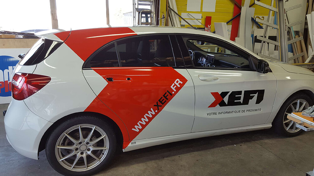Réalisation d’un covering partiel pour les véhicules de cette société spécialisée dans la vente et la maintenance de matériel informatique. Ce décor a été décliné sur toute la flotte de véhicules. Décor réalisé par nos soins