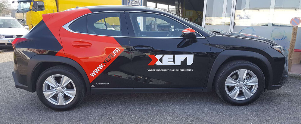 Réalisation d’un covering partiel pour les véhicules de cette société spécialisée dans la vente et la maintenance de matériel informatique. Ce décor a été décliné sur toute la flotte de véhicules. Décor réalisé par nos soins