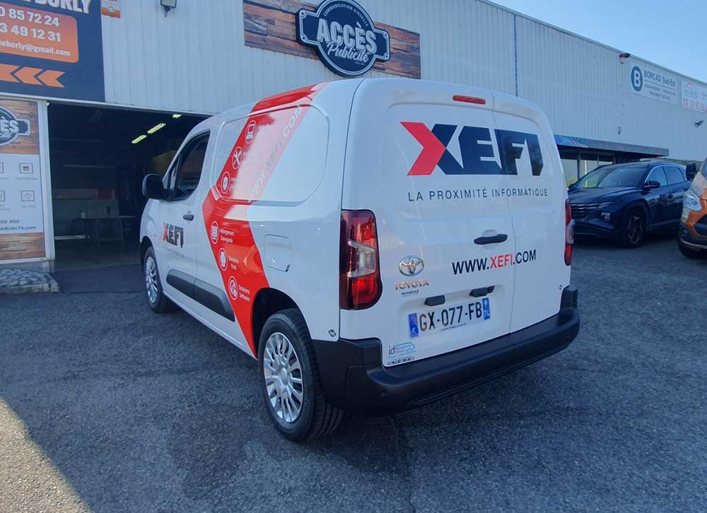 Réalisation d’un covering partiel sur le nouveau véhicule de cette société spécialisée dans la vente et la maintenance de matériel informatique. Ce décor a été décliné sur toute la flotte de véhicules et réalisé par nos soins.