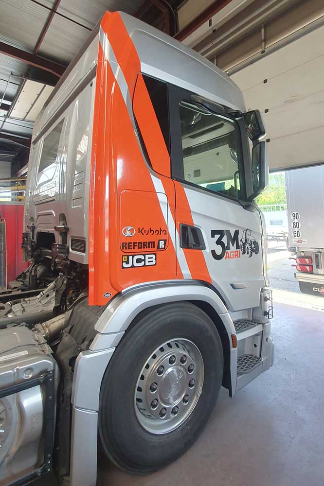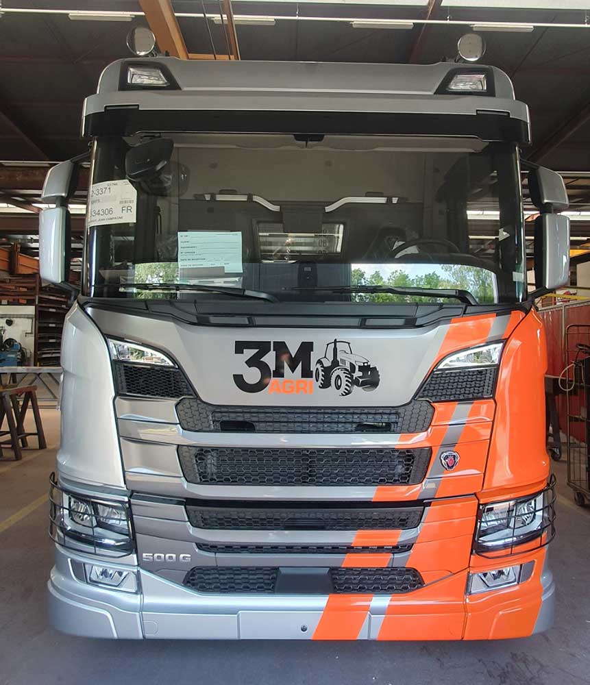 Réalisation d’un covering partiel XXL pour le camion de livraison de l’entreprise 3M Agri, spécialisée dans l’entretien des machines agricoles. Ce décor a été décliné sur toute la flotte de véhicules de l’entreprise. Décor fourni par le client.