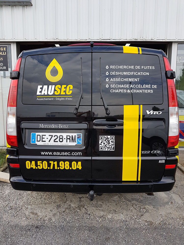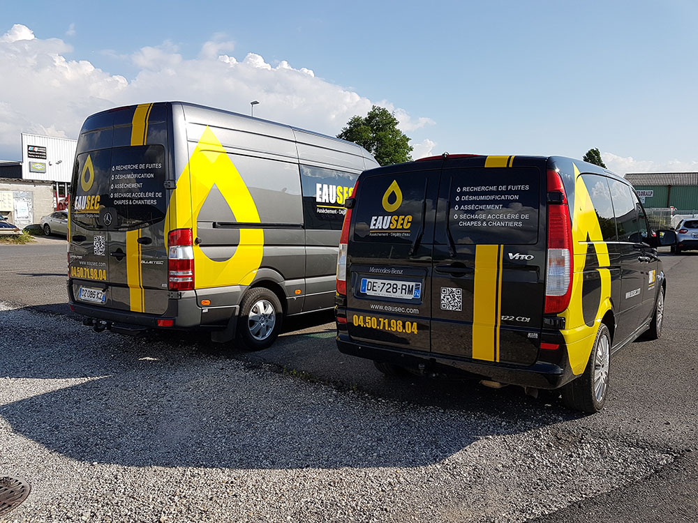 Réalisation d’un covering partiel pour une société spécialisée dans la recherche de fuites et le traitement de l’humidité. Ce décor a été décliné sur toute la flotte de véhicules de l’entreprise. Décor réalisé par notre partenaire graphique OAK-Webdesign.