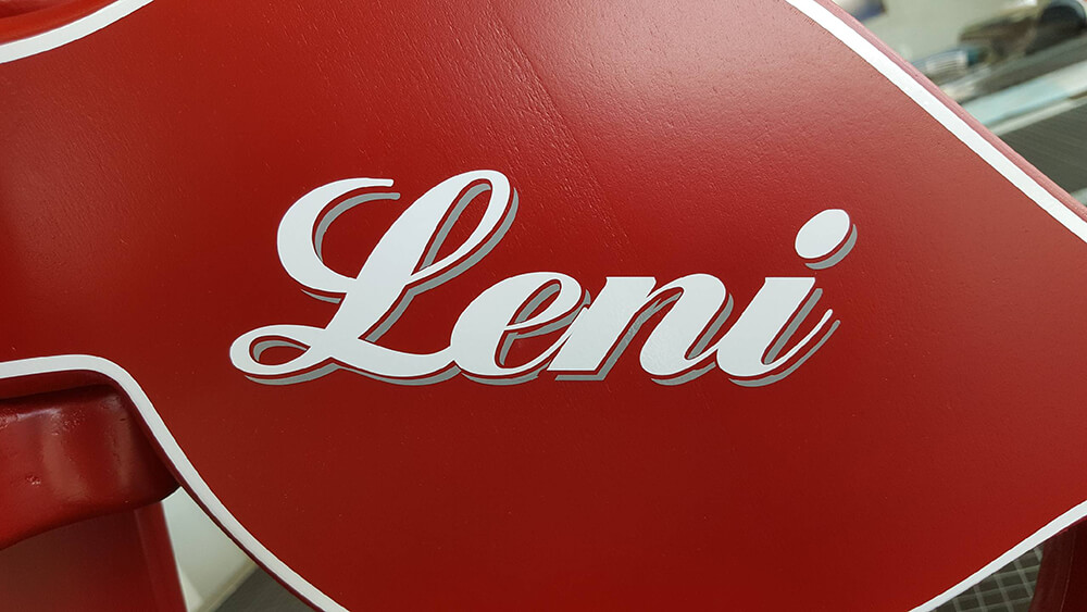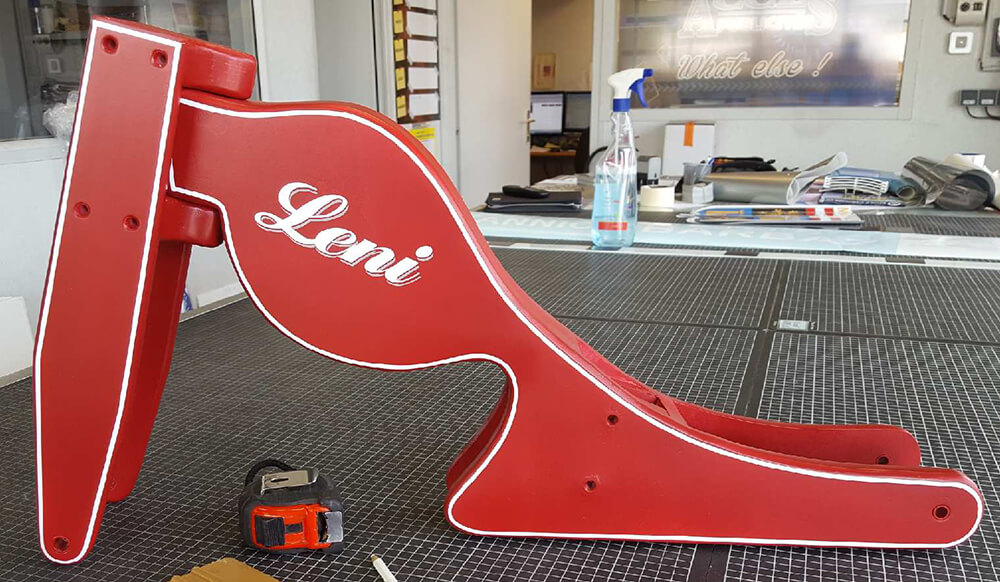 Personnalisation d’un vélo en bois pour un particulier. Décor réalisé par nos soins.