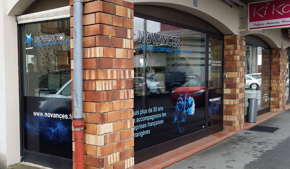 Réalisation d’une vitrine à l’image de l’activité de ce cabinet d’expertise comptable au service des professionnels