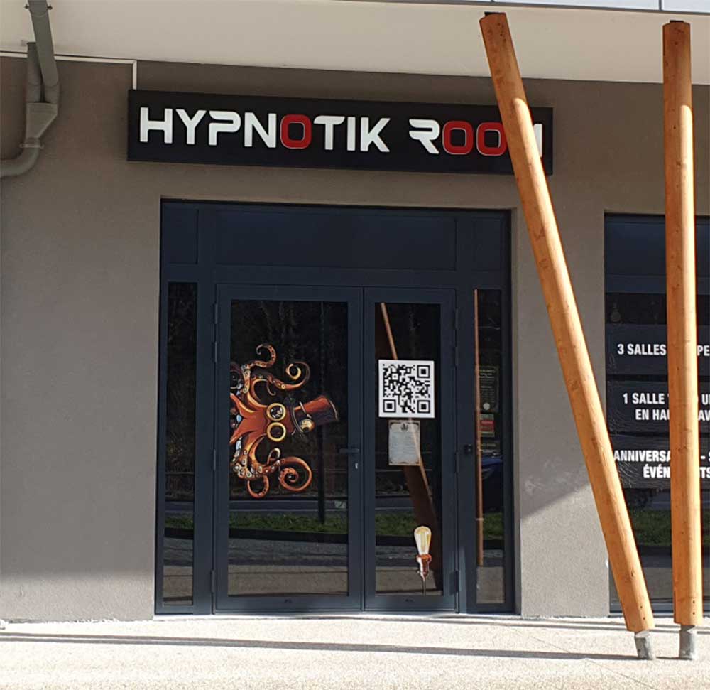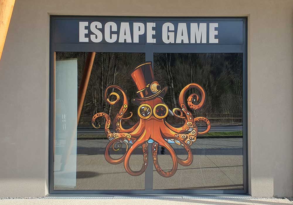 Création et installation d’une enseigne lumineuse avec lettres en relief, ainsi que du marquage des vitrines pour cet escape game situé à Fillinges. Une création 100 % sur mesure, signée par nos soins !