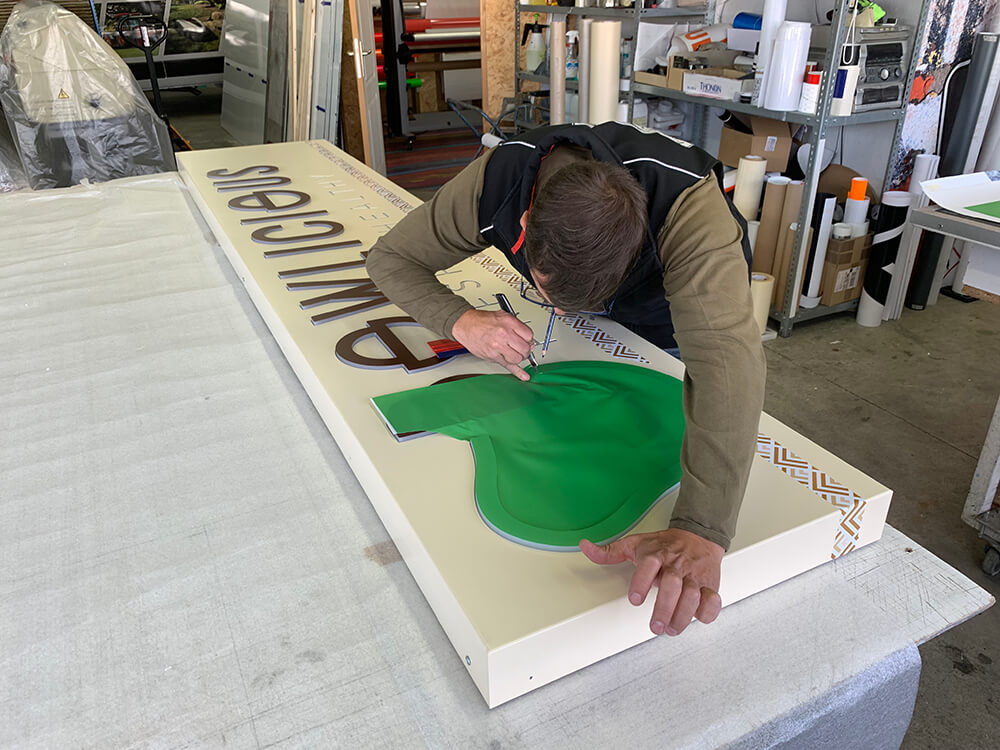 Détails : Enseigne lumineuse & Enseigne drapeau