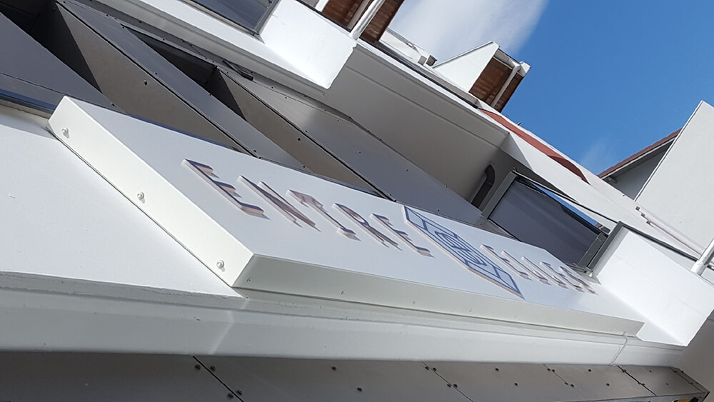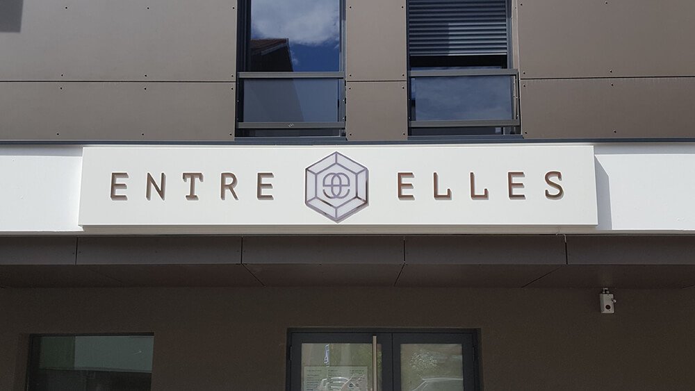 Création d’une enseigne avec caisson lumineux & lettrages Plexi en relief pour ce nouvel institut de beauté qui vient d’ouvrir ses portes à Ville La Grand. Décor fourni par le client.