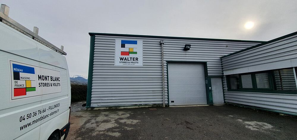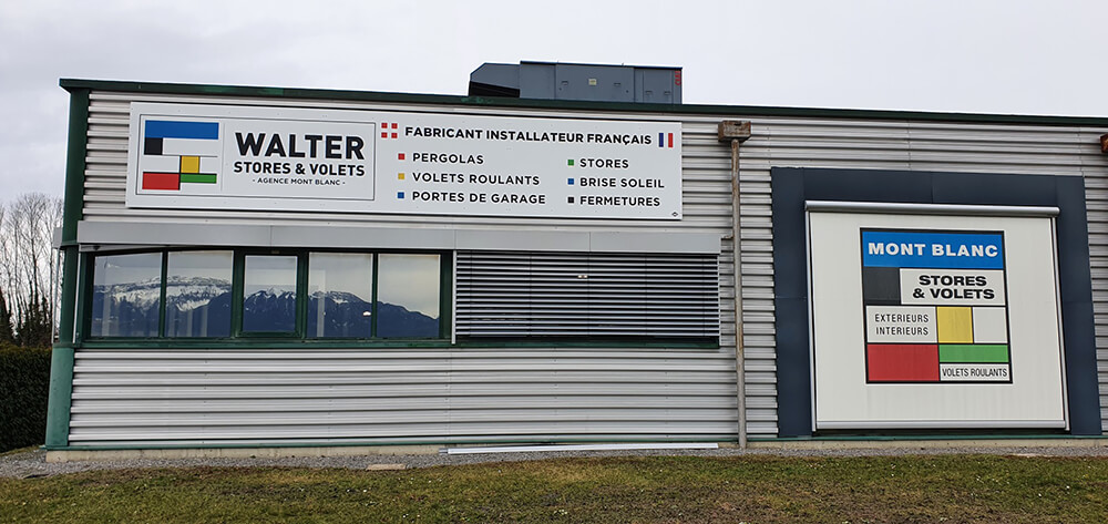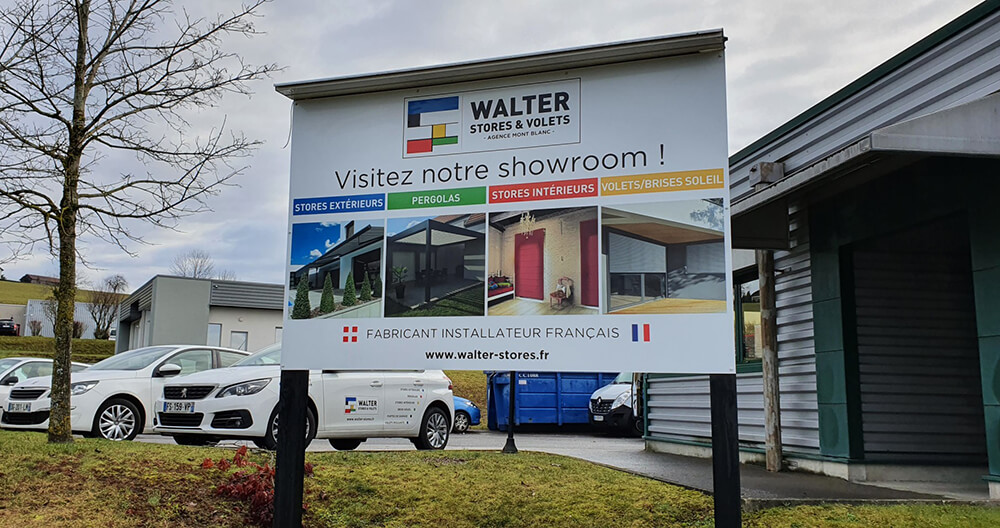 Fourniture & Installation d’une signalétique extérieure complète permettant d’identifier les locaux de ce fabricant de stores et pergolas installé à Findrol. Décor réalisé par nos soins conformément à la charte graphique de l’entreprise.