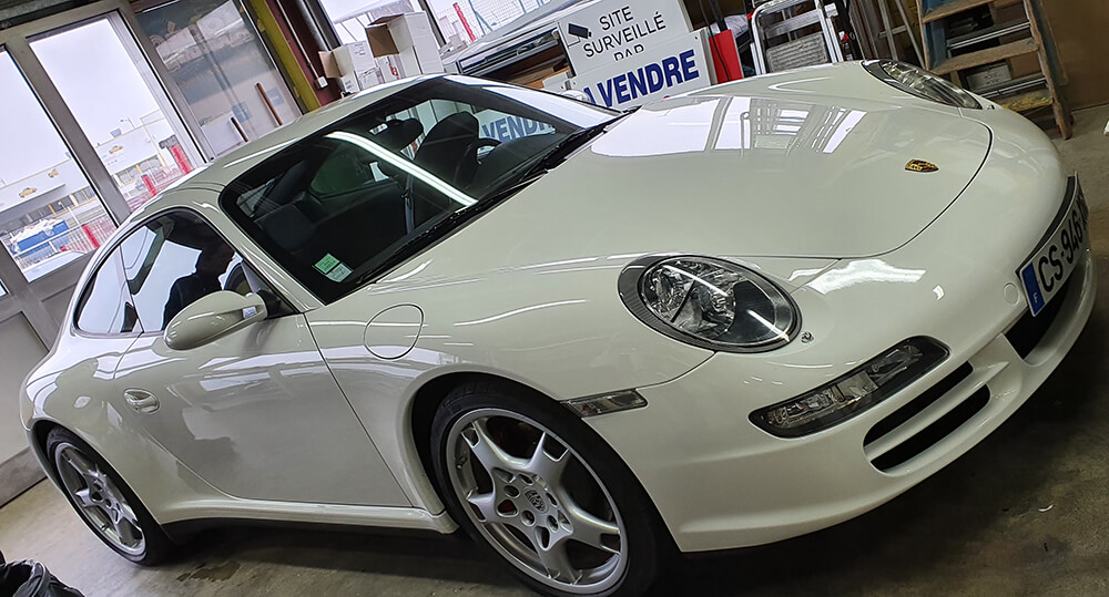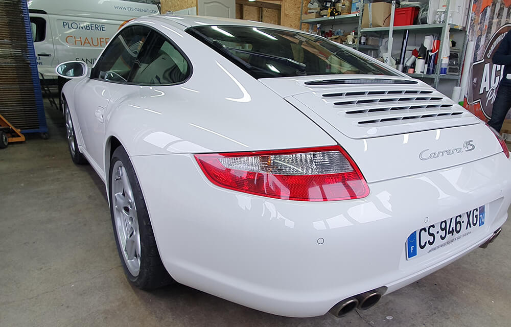 Mise en place de films de protection des bas de caisse sur le véhicule d’un particulier.