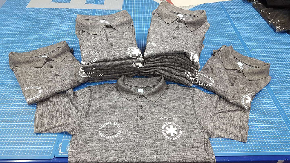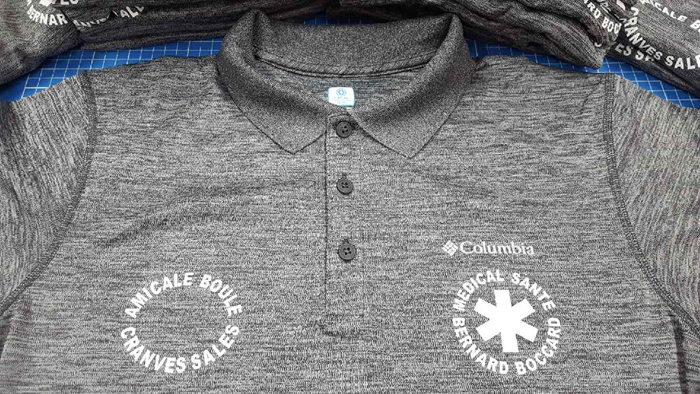 Marquage de vêtements destinés aux licenciés de l’amicale des boules de Cranves-Sales. Décor réalisé par nos soins.