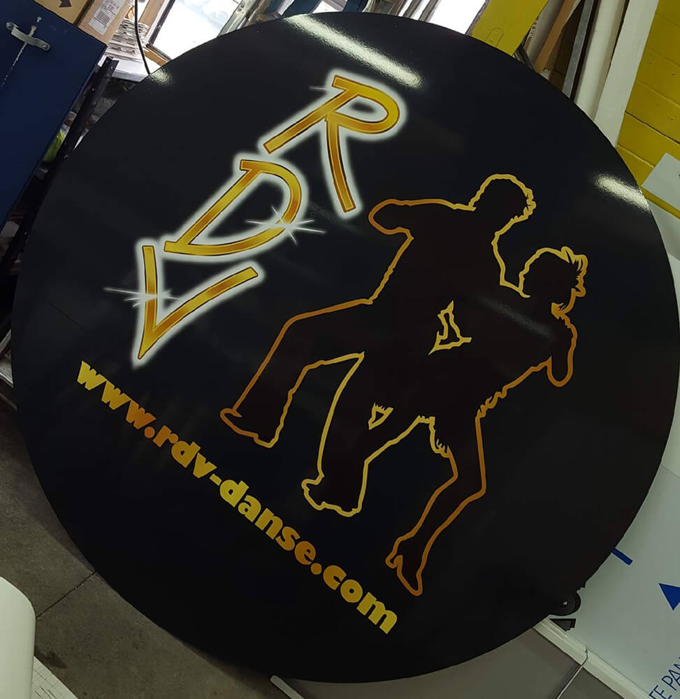 Création d’une enseigne en Alu Dibond pour une école de danse basée à Contamine-sur-Arve. Décor réalisé par notre partenaire graphique OAK-Webdesign.