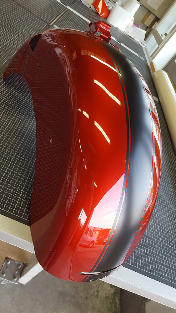 Création d’un décor original afin de personnaliser la moto de ce particulier. Décor réalisé par nos soins.