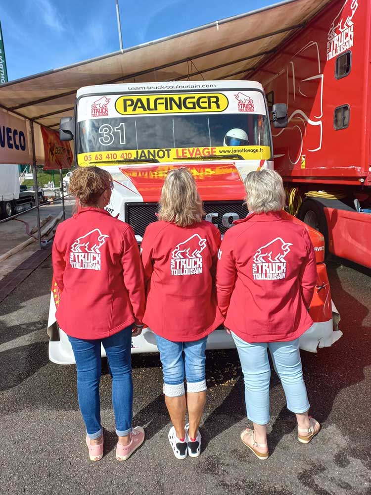Personnalisation des tenues officielles du Team Truck Toulousain, une association de passionnés de course de camions, avec marquages par transfert à chaud pour un rendu unique et professionnel