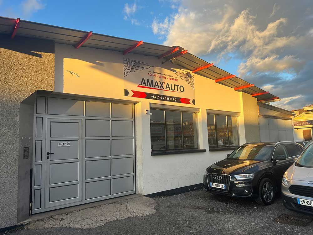 Fabrication et pose d’une pré-enseigne en Alu Dibond avec décor adhésif en impression numérique pour un garage automobile spécialisé dans la vente de véhicules d’occasion. Décor conçu par notre partenaire graphique OAK-Webdesign.