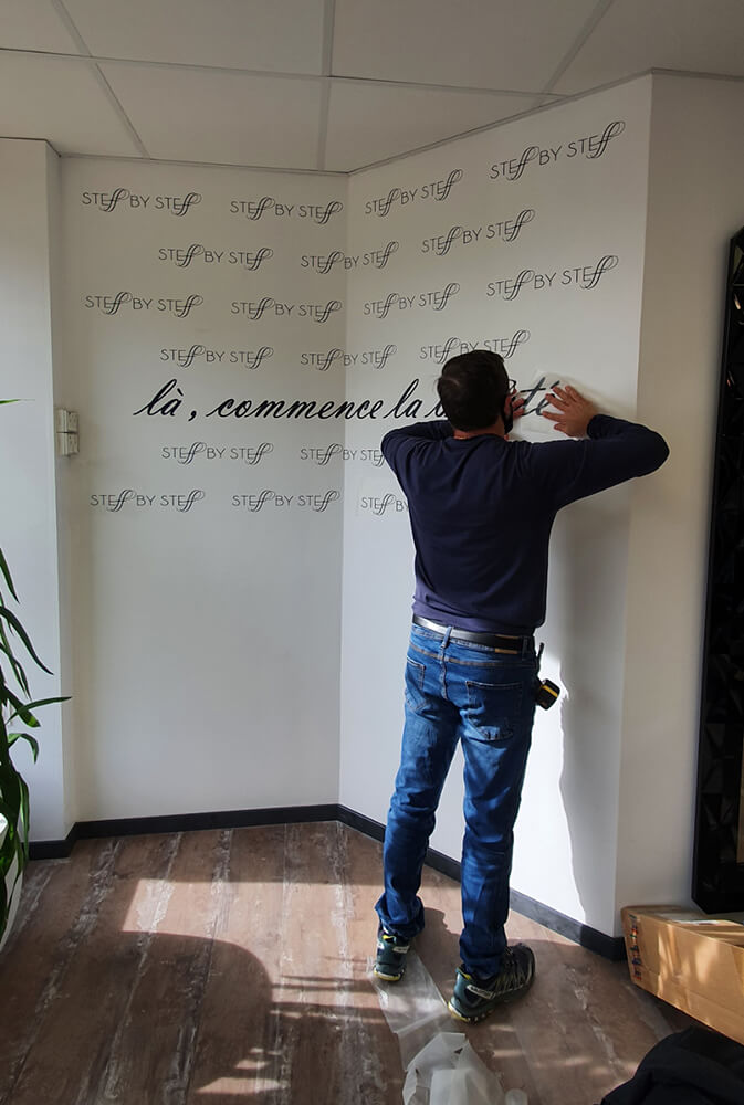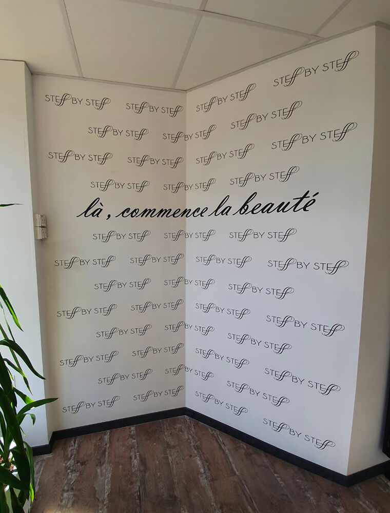 Création d’un photocall sur les murs d’un salon de coiffure installé à Viuz En Sallaz. Décor réalisé par nos soins.