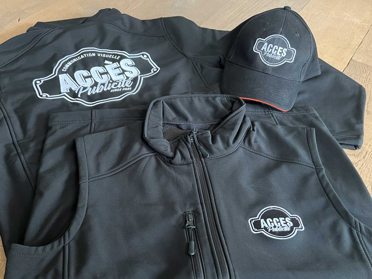 T-shirts, polos, vestes ou encore casquettes... Accès Publicité offre une large palette de vêtements pour que vous puissiez vous habiller avec votre marque.