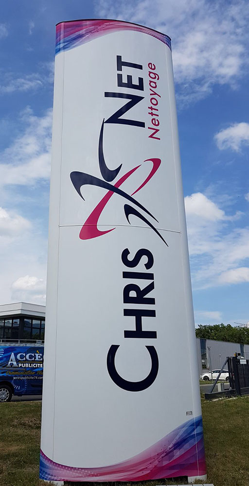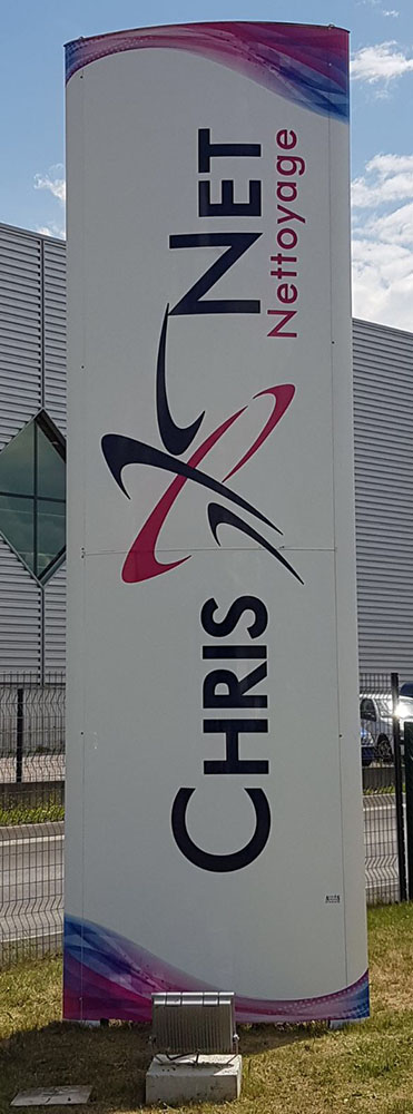 Réalisation d’un Totem pour une société de nettoyage nouvellement installée dans une zone artisanale. Ces dimensions de 6X1,5m garantissent une très bonne visibilité